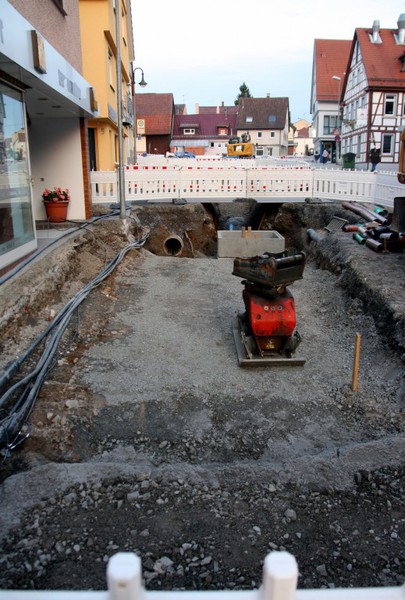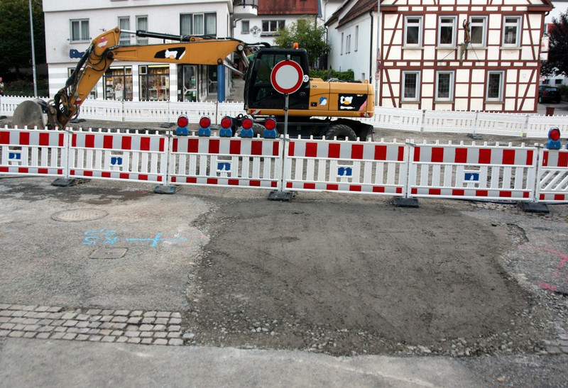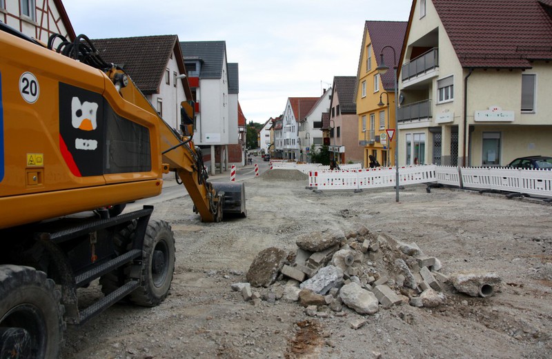 Jetzt geht's los. Im ersten Bauabschnitt zur Sanierung der Ortsdurchfahrt werden nun 26 Wochen lang die Bagger und Laster die Ortsmitte regieren. Die Geschäfte sind geöffnet! Das gilt es nicht zu vergessen. Anbei die ersten Bilder von der Baustelle.