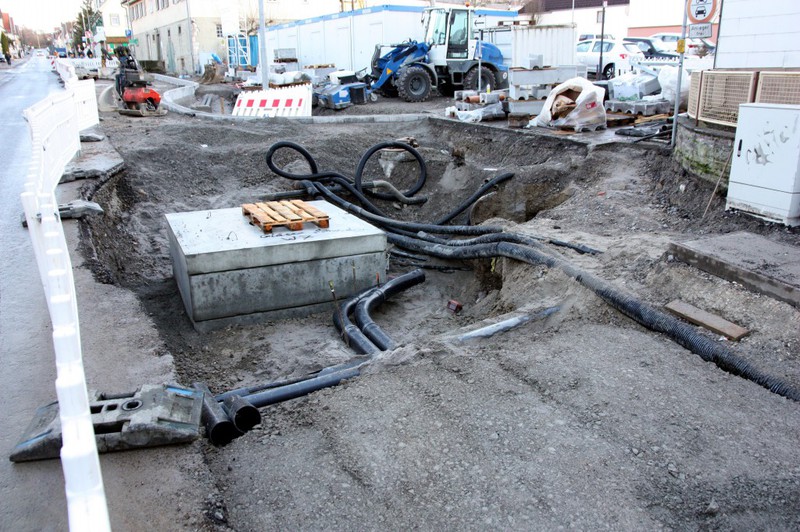Zur Baustelle selbst gibt es zu berichten, dass es ein erstes großes Loch auf Höhe der Ludwigsburger Straße gibt. Es sind auch vereinzelt bereits alte Leitungen ausgebaut worden und es wurden neue