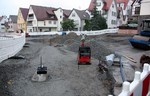 Aktuell herrscht auf der Baustelle keine rege Bautätigkeit. Grund hierfür ist der Ausfall eines Baggerfahrers, der in den Bauferien nicht kurzfristig ersetzt werden kann. Ab der nächsten Woche