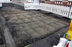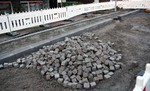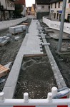 Vorbereitungen für die Randsteine getroffen worden. Dann kann ja auch bald das Pflaster für den Gehweg kommen.
