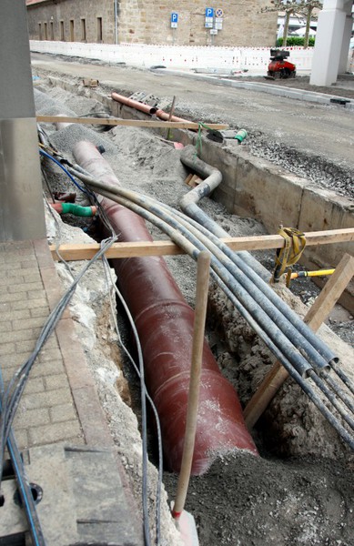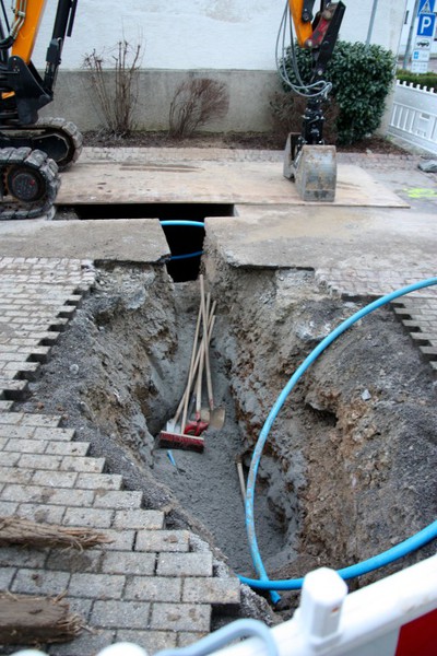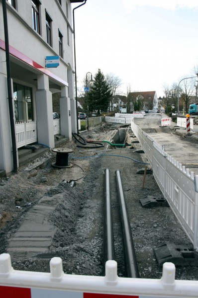 auf der nördlichen Seite der Vaihinger Straße verlegt werden. Das aktuelle Ende der neuen Leitungen liegt derzeit auf Höhe der Zehntscheuer. Es ist also davon auszugehen, dass es auf der nördlichen