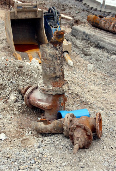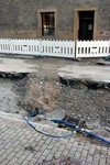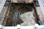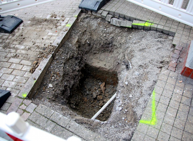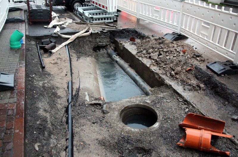 Die Hirschstraße wurde gesperrt, um hier Arbeiten an der Wasserleitung durchzuführen. Auch an anderen Stellen gab es kleine Baugruben, um die Ersatzwasserversorgung vorzubereiten.