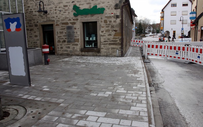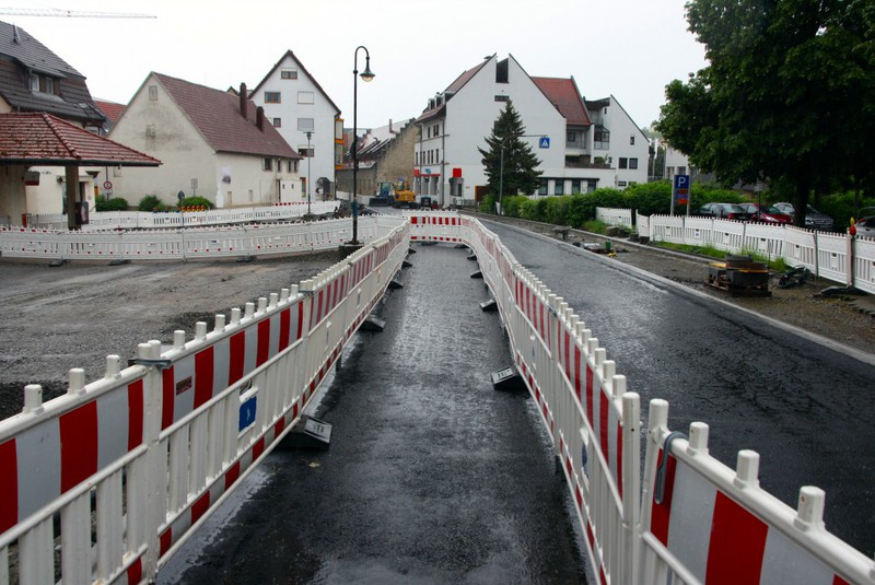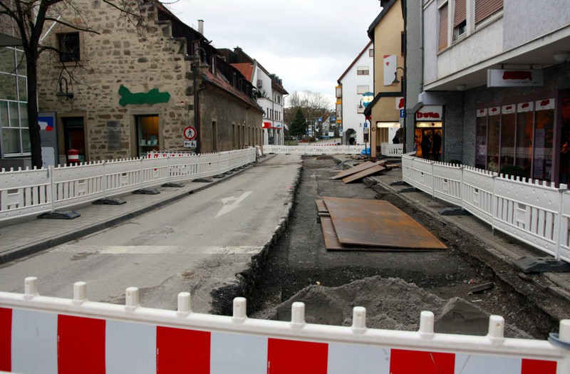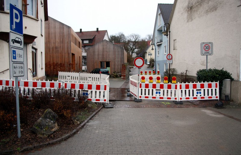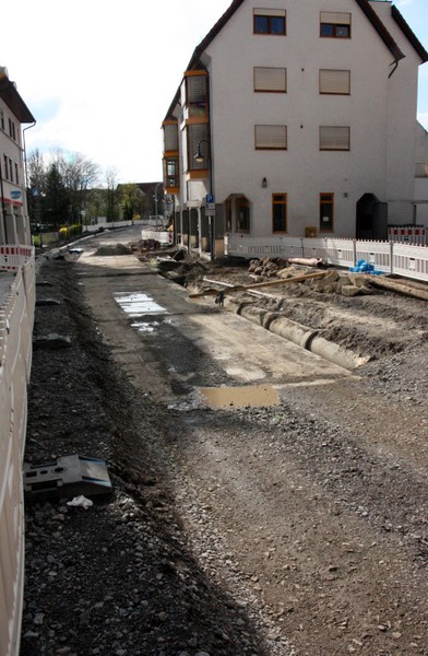 um die Zehntscheuer durchaus Sinn. Im weiteren Verlauf der Baustelle in Richtung Glems dient der fehlende Anliegerverkehr durchaus einer schnelleren Bauausführung. Dennoch findet derzeit trotz