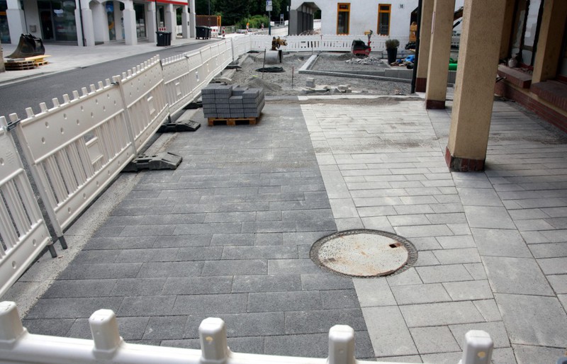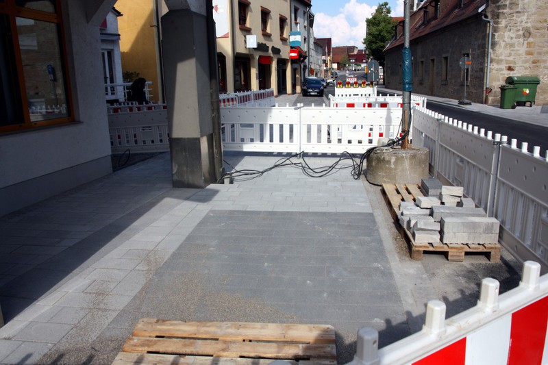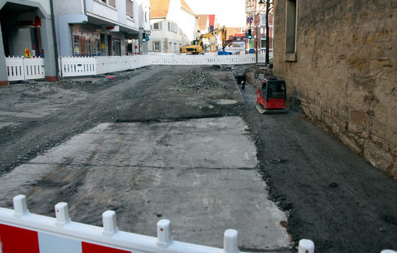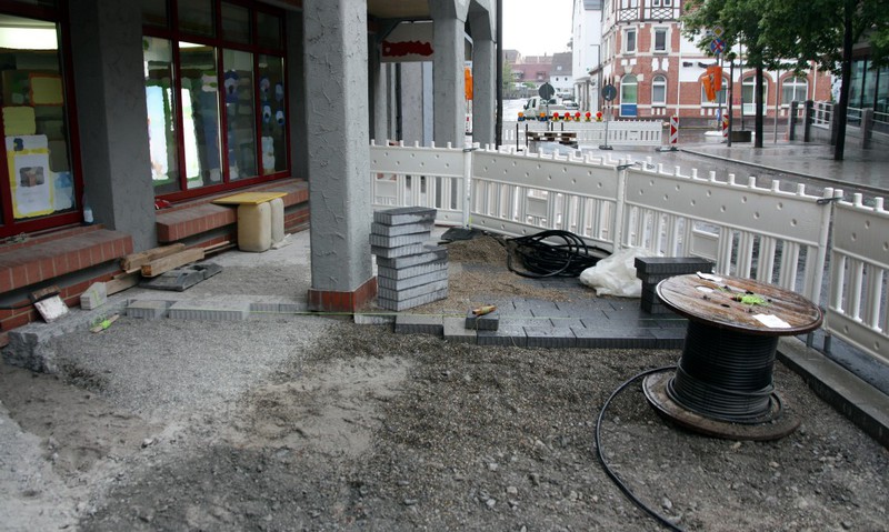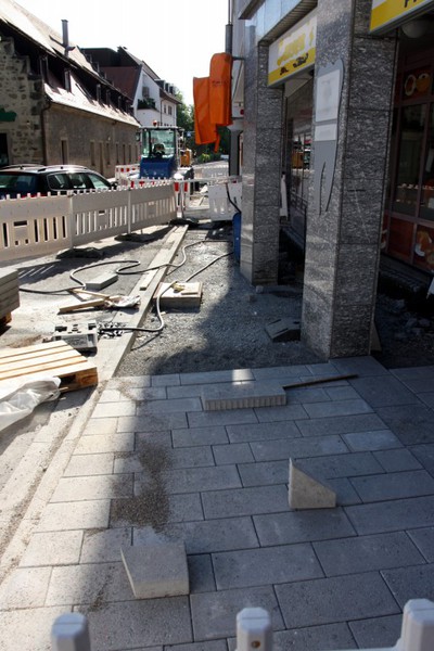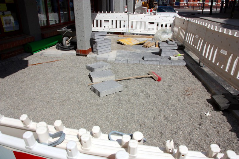 In dieser Woche lag der Fokus auf den Gehwegen. Sowohl bei den Ladengeschäften ging es ein Stück weit voran und auf der gegenüberliegenden Seite kam man bis knapp an die