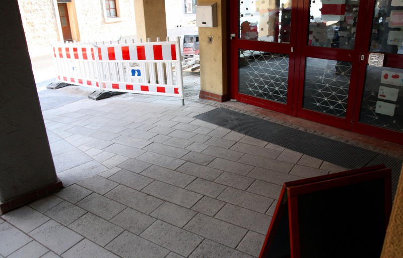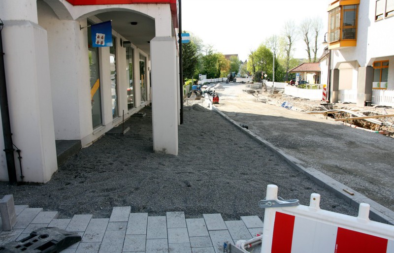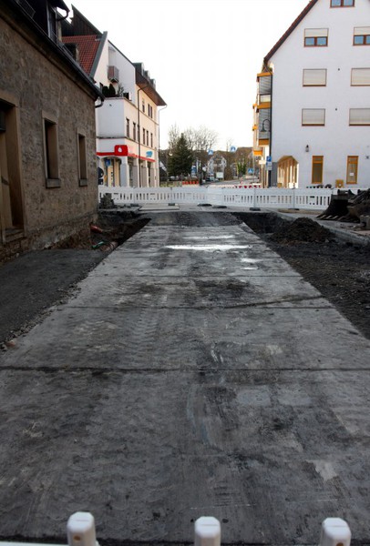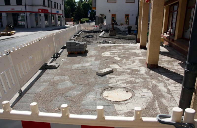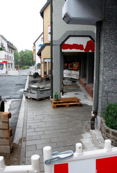kleine Ecke. Die Zufahrt zum Rathausparkplatz wurde sogar schon am letzten Samstag fertiggestellt. Entgegen der Verlautbarung auf den aktuellen Aushängen in den Geschäften ist die Zufahrt aber noch