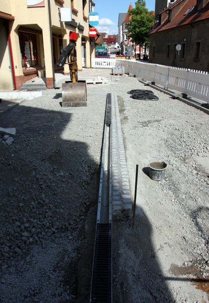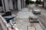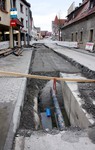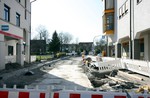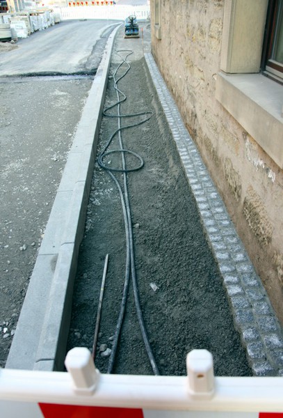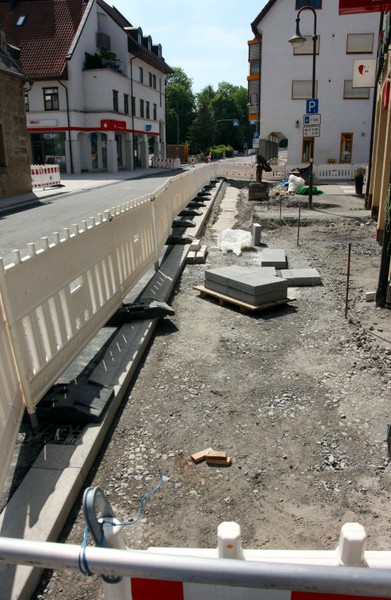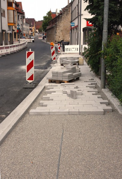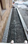 südlichen Straßenseite begonnen. Die Randsteine sind bereits seit drei Wochen gesetzt. Diese Zeit wurde aber nicht für die Pflasterarbeiten genutzt, weil der Pflastertrupp in diesem Zeitraum am