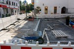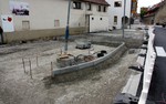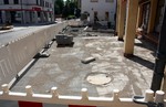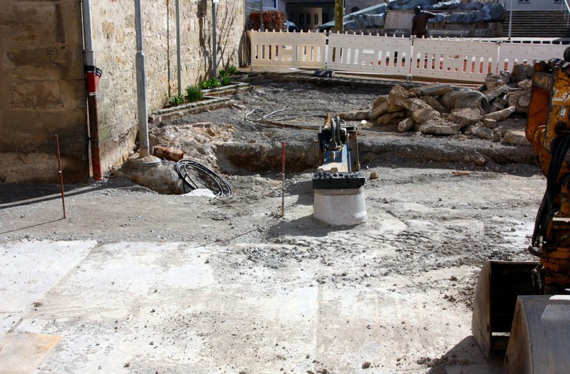 Rathaus-Seite könnten die Pflasterarbeiten ausgeführt werden. Die Arbeiter sind aber derzeit primär in --> Bauabschnitt 1 am Vaux-le-Pénil-Platz beschäftigt. Die Arbeiten im 2. Unterabschnitt dominieren jetzt die Abläufe im Bauabschnitt