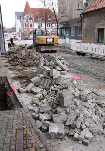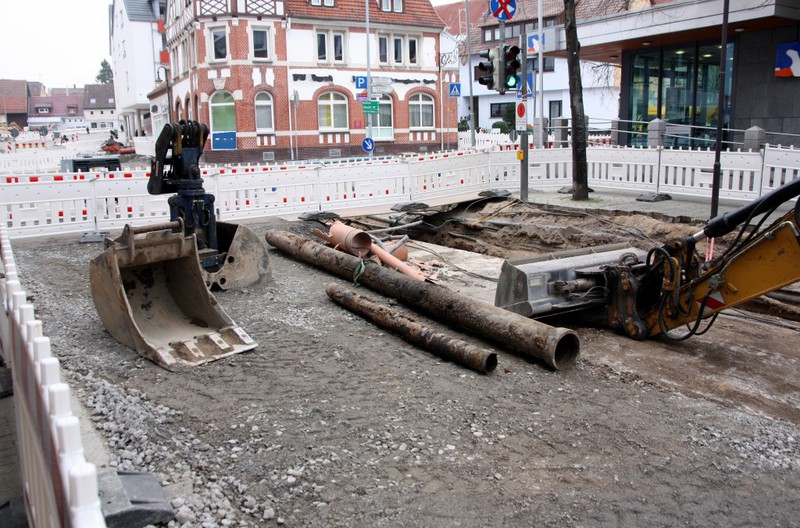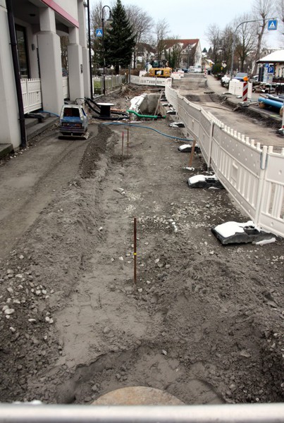 Insgesamt sind es noch viele Arbeiten, die bis zum angekündigten Abschluss des Bauabschnitts 2 Ende Mai zu tun sind: Wasserleitungen verlegen, Pflasterarbeiten auf beiden
