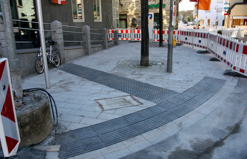 Es gab eine kleine Änderung in dieser Woche: Der weiterhin provisorische Zebrastreifen ist jetzt an der richtigen Stelle passend zu den Markierungen an den