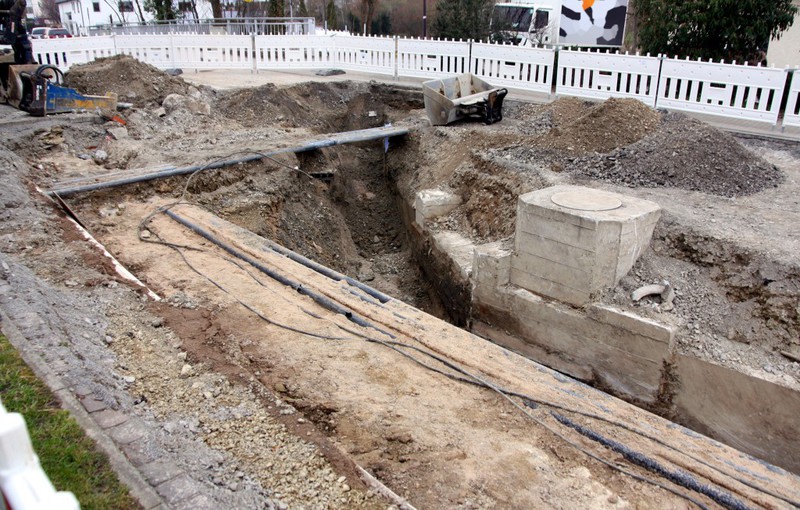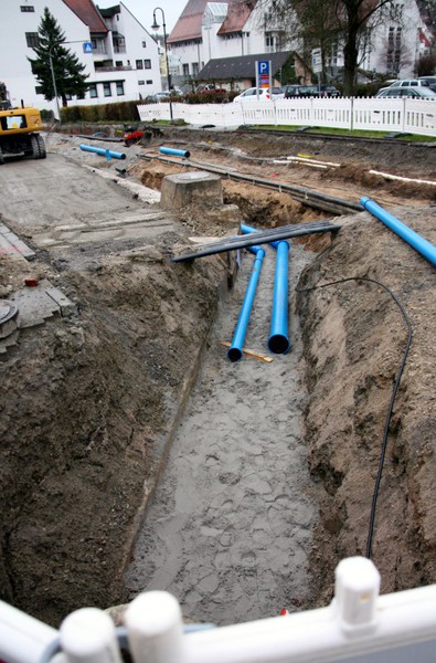 Auf Grund des Problems mit einer Gasleitung in der Bahnhofstraßenkreuzung ist es laut der Information der Gemeindeverwaltung schneller im Bauabschnitt 2 vorangegangen als geplant. Hier ist ein Stück weit der Graben für die neuen Wasserleitungen ausgehoben worden und es sind neue Wasserleitungen verlegt worden. Ebenso sind die Häuser an die provisorische Wasserversorgung angeschlossen worden.