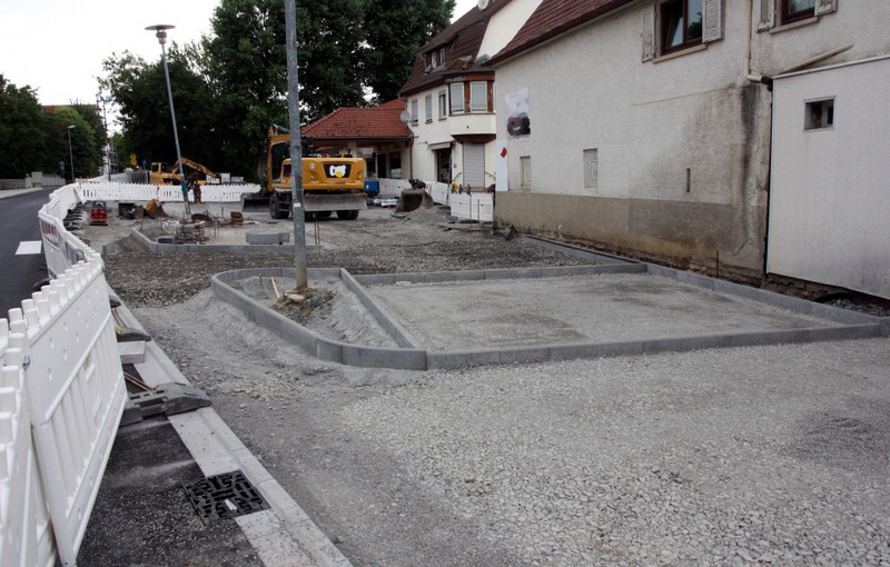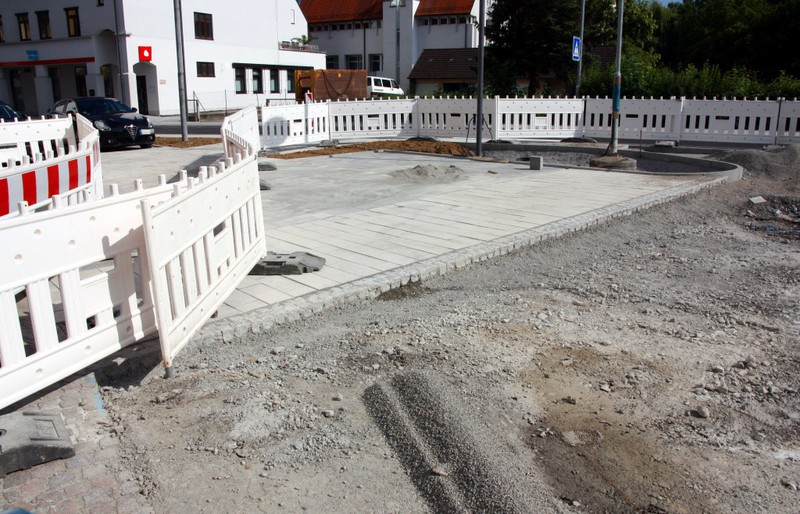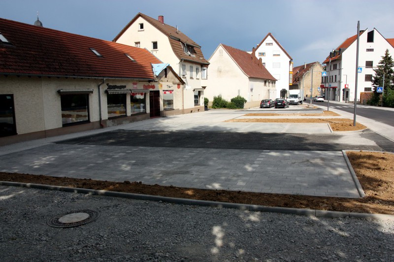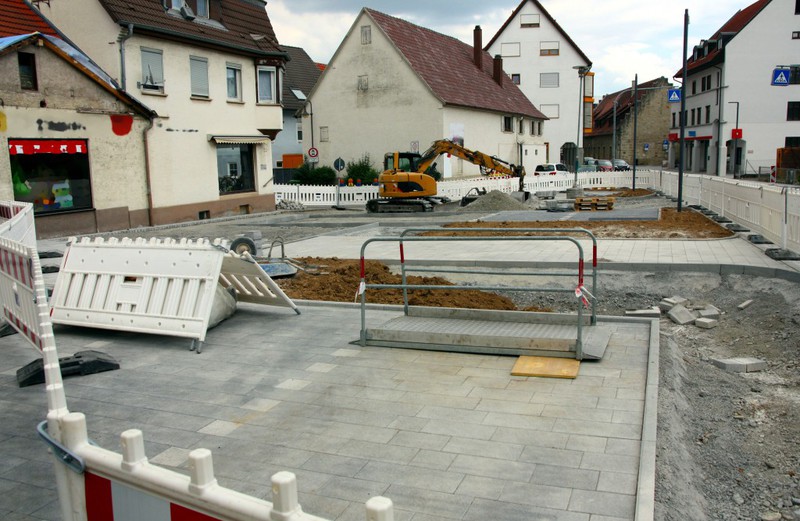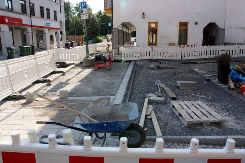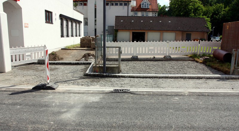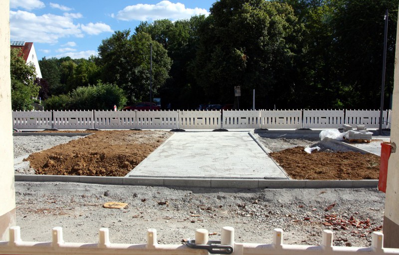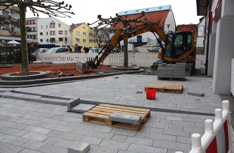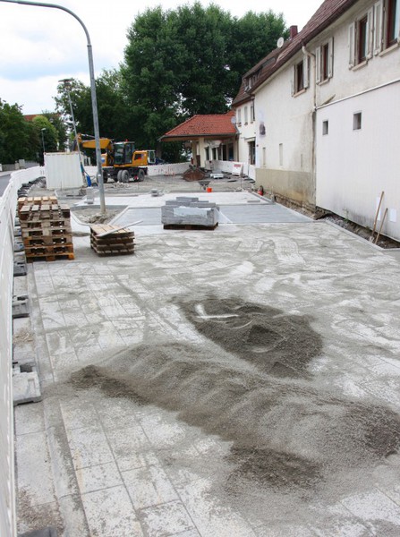 Wie es auch im Amtsblatt dokumentiert ist, verschiebt sich die Fertigstellung des Areals. Es schaut aber soweit gut aus, dass die Parkplätze und alle Pflasterarbeiten in der nächsten Woche