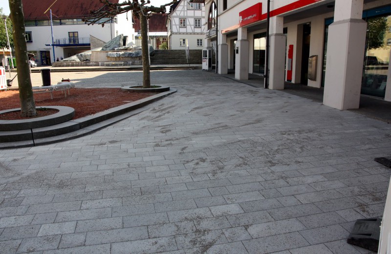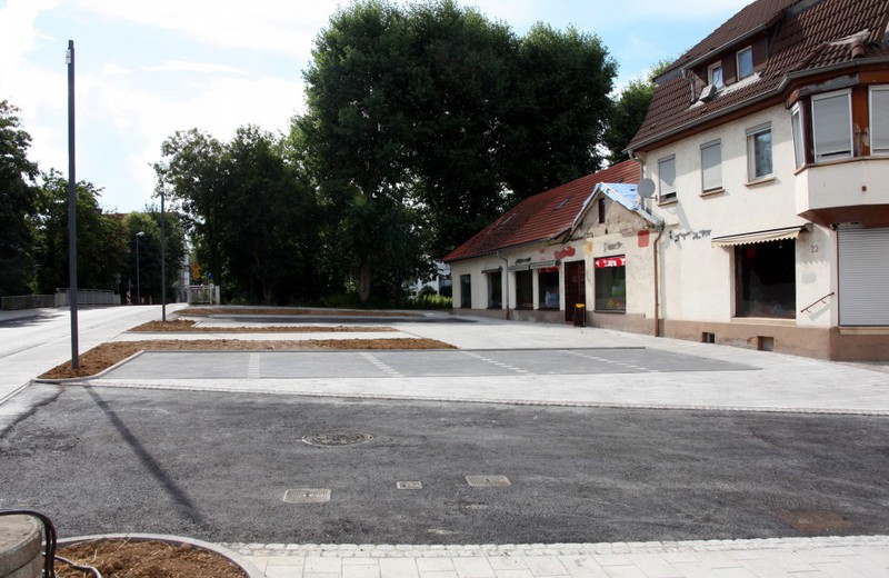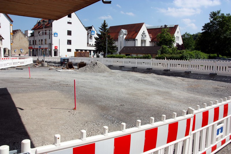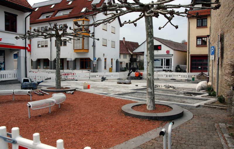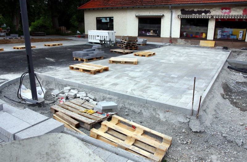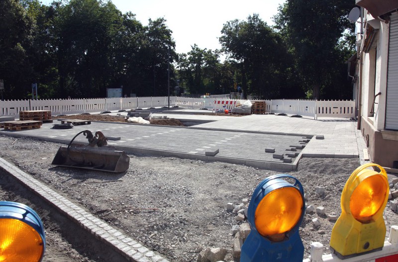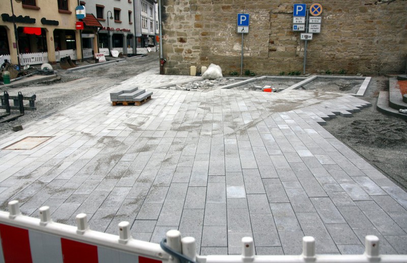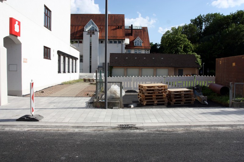 Wie es auch im Amtsblatt dokumentiert ist, verschiebt sich die Fertigstellung des Areals. Es schaut aber soweit gut aus, dass die Parkplätze und alle Pflasterarbeiten in der nächsten Woche