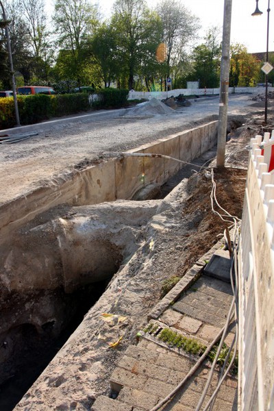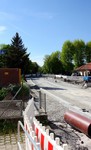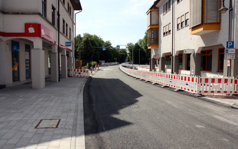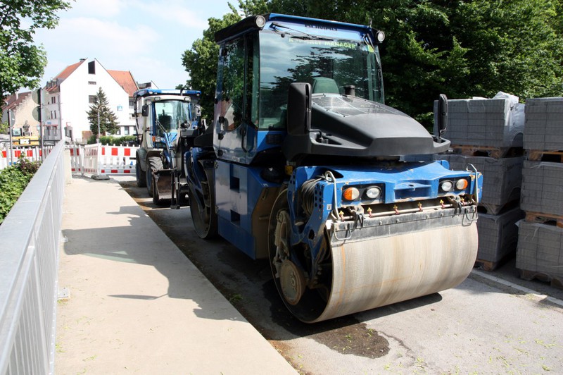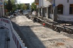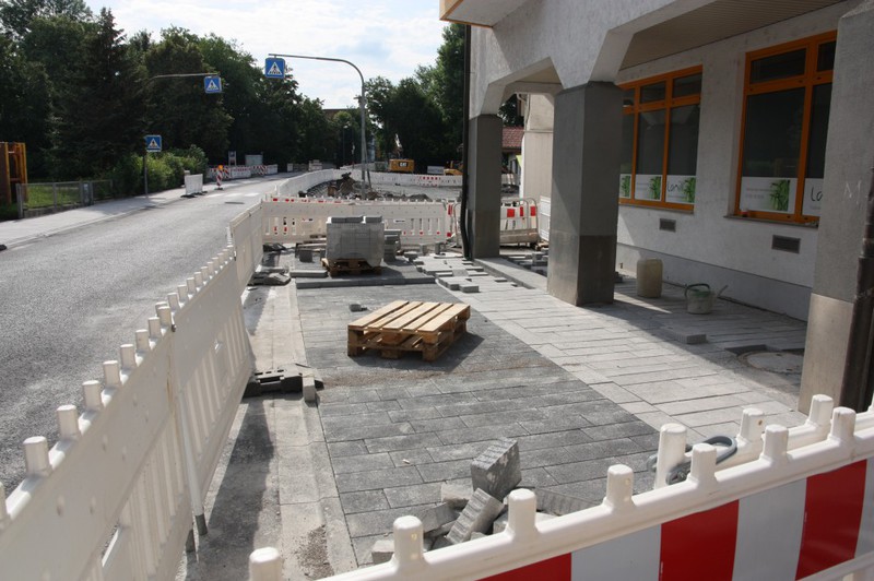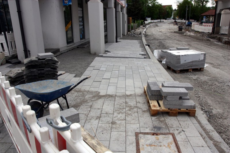 Mitte Mai angekündigte Asphaltarbeiten vorbereitet werden. Bei den Gehwegen links und rechts der Fahrbahn gab es in dieser Woche keinen Fortschritt. Lediglich im Bereich der Bahnhofstraßenkreuzung
