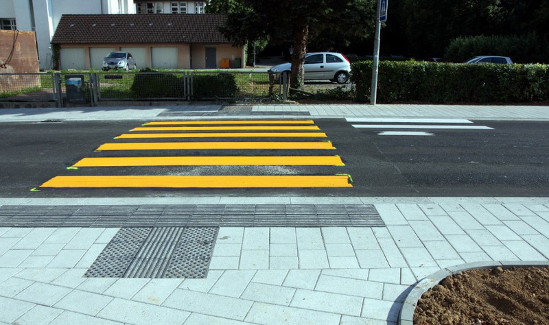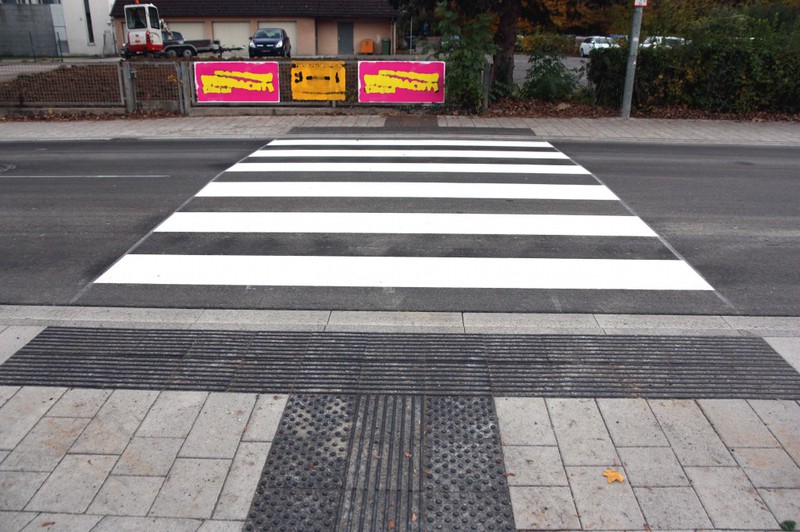 noch die Fahrbahnmarkierungen. Gerade an den Zebrastreifen merkt man, wie wichtig diese Markierungen sind. Ohne Zebrastreifen muss man sich deutlich bemerkbarer machen, um über die Straße zu kommen.
