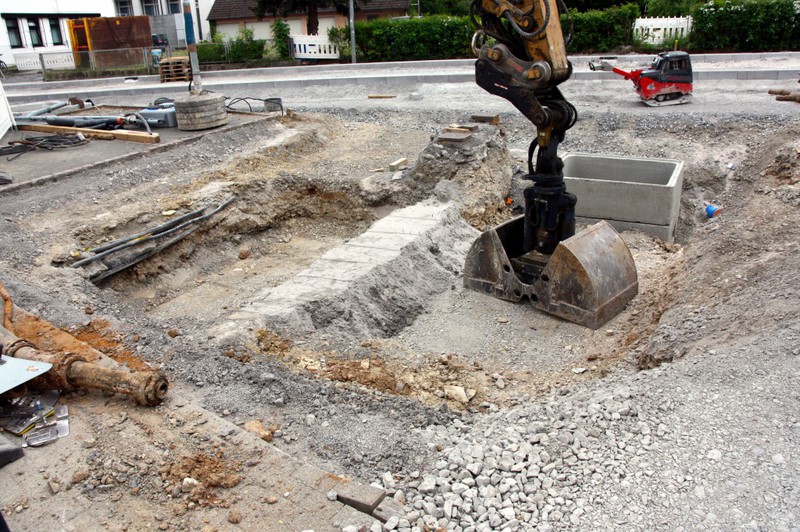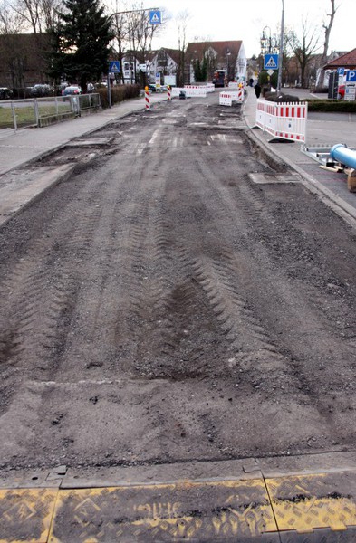 Asphalt ausgebracht werden kann oder Pflaster verlegt werden können. Laut der Mitteilung im Mitteilungsblatt 9/2018 gehen die Arbeiten in Form von Tiefbauarbeiten baldmöglichst weiter. Man wird es