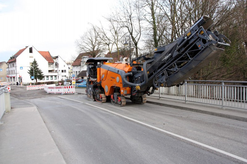 - Abfräsen der alten Asphaltschicht in Teilabschnitt Richtung Glems