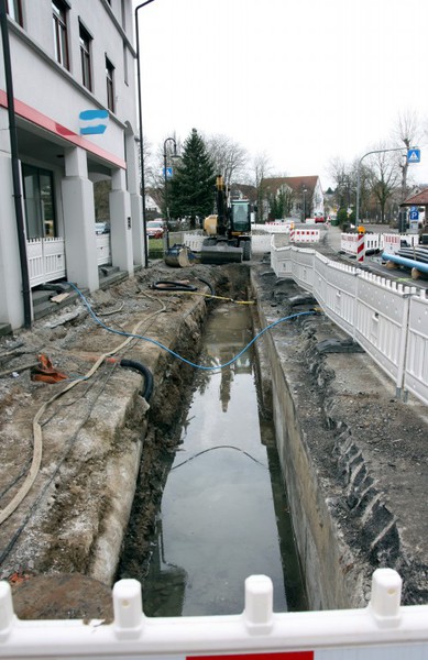 eindeutiger Beschilderung und abgefrästem Asphalt ein intensiver Schleichverkehr über den Rathaus-Parkplatz statt. Das wird dann wohl mit der Wasserleitungsverlegung in der nächsten Woche unterbunden