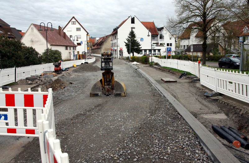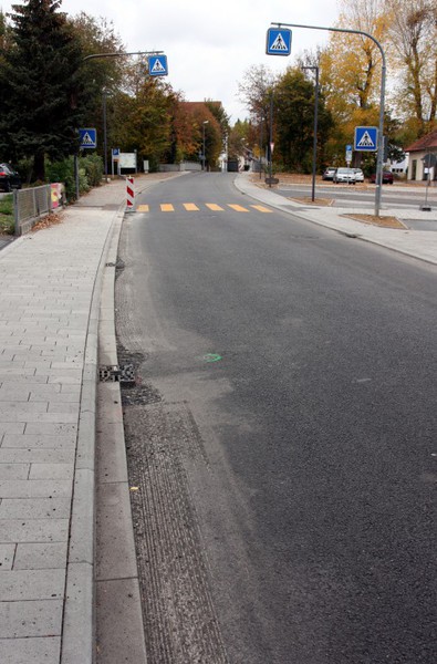 Ortsausgang. Auf ca. 1,2 km Länge werden Leitungen und Kanäle im Untergrund erneuert und danach die Straßen- und Gehwegflächen neu angelegt. Hinzu kommen die Sanierung des