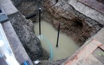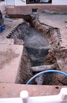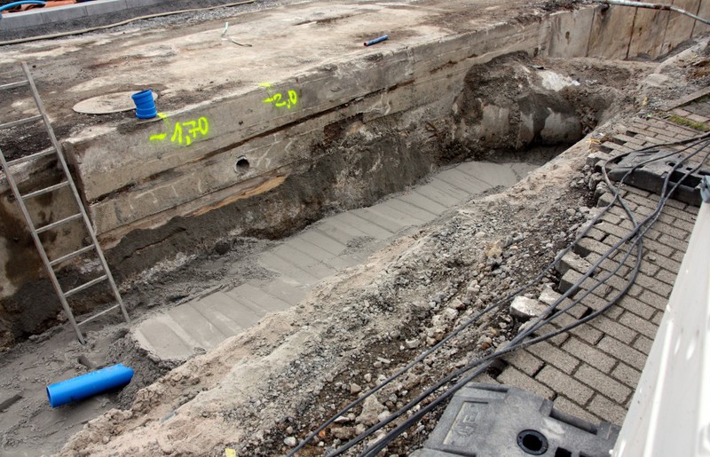 Am Montag war nach dem verregneten Wochenende inkl. des verregneten Montags erst einmal Land unter auf der Baustelle. Alle Baugruben waren unter Wasser, eine davon