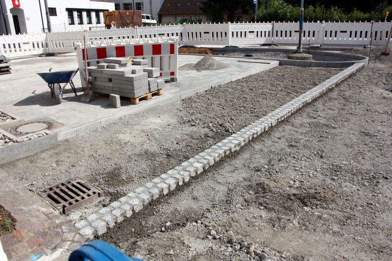 - Setzen der Randsteine auf der nördlichen Straßenseite