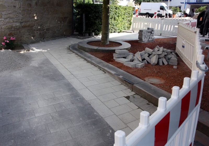 sein OK für dieses Vorhaben geben konnte, erhöht sich hier nun der zeitliche Druck. Die Pflasterarbeiten sind in Gänze sehr aufwendig. In dieser Woche wurden die Pflasterarbeiten wieder auf der