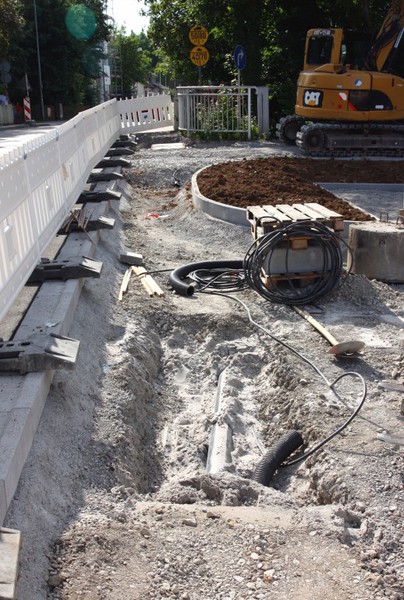 dieser Woche entspricht dieser Zielsetzung. Die Baugräben der Tiefbauarbeiten sind großteils zugeschüttet und es stehen bereits Markierungen für das Setzen der Randsteine auf der nördlichen