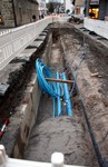Die Woche lief im Bauabschnitt 2 ruhig an. Ab der zweiten Wochenhälfte wurden dann Asphaltschichten abgetragen und der Baugraben verlängert. Die Frage der in der letzten Woche verlegten Leerrohre in der Vaihinger Straße hat sich in dieser Woche geklärt. Die Leerrohre werden für die Ersatzwasserversorgung genutzt. Damit werden wohl zwei Fliegen mit einer Klappe geschlagen: Die Ersatzwasserversorgung ist störungssicher verlegt und die Straße ist von den Baumaschinen befahrbar.