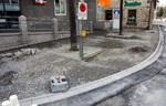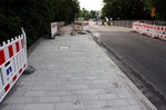Die Arbeiten in dieser Woche konzentrierten sich ganz auf die nördliche Gehwegseite. Der Gehweg hat den provisorischen Zebrastreifen kurz vor der Hirschstraße erreicht