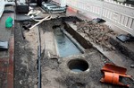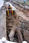 Die Arbeiten in dieser Woche konzentrierten sich auf den 2. Unterabschnitt. Hier wurde auf der nördlichen Seite ein alter Abwasserkanal ausgebaut und der Graben für die anstehende Verlegung der neuen