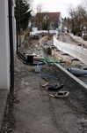 Viele Aktivitäten gab es auch im Bauabschnitt 2 nach der Frostpause. Es wurde intensiv an der Verlegung der Wasserleitungen gearbeitet und der restliche Asphalt in der Vaihinger Straße in Richtung Glems wurde abgefräst. Im ersten Teilstück der Vaihinger Straße gab es im direkten Anschluss an die Bahnhofstraßenkreuzung eine neue Asphaltschicht. Zuletzt gab es noch Vorarbeiten zum Verlegen des Gehwegpflasters.