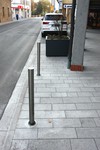 vorwiegend Gehwege vor einem Befahren oder Beparken zu schützen. Dass die Säulen nachträglich ins fertige Pflaster gesetzt wurden, sieht man ihnen etwas an. Die Fahrbahnmarkierungen, Zebrastreifen