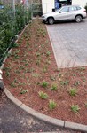Es gibt erste Beetbepflanzungen an den neuen Parkplätzen an der Vaihinger Straße. Ein Mix aus kleinen Sträuchern, Büschen und Bodendeckern wurden eingepflanzt. Ein guter