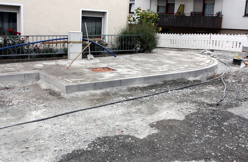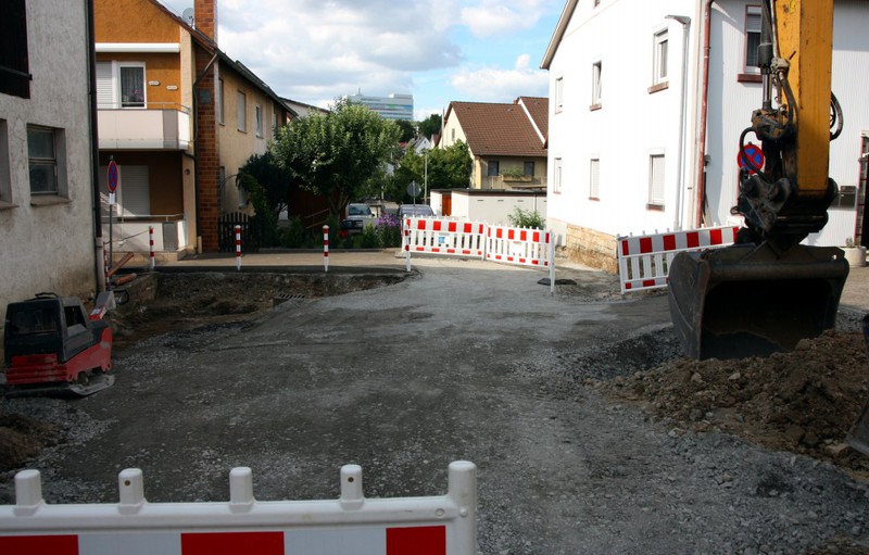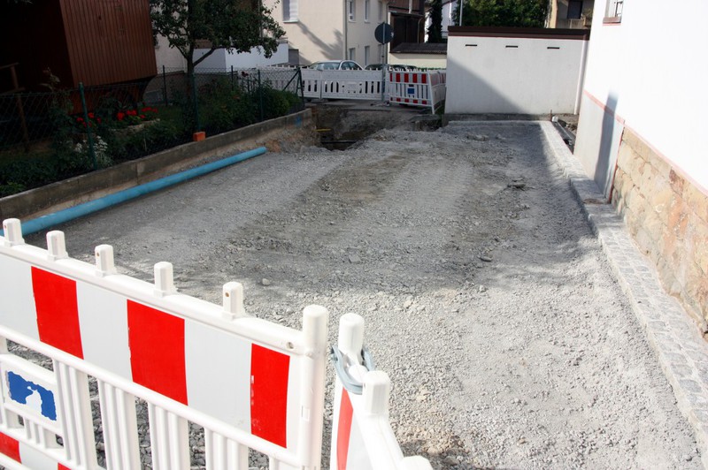 Die Arbeiten an der Verlegung der Gasleitung sind abgeschlossen. Die Baugräben werden weiter zugeschüttet und die Arbeiten an den Gehwegen und Parkplätzen geht weiter. Es