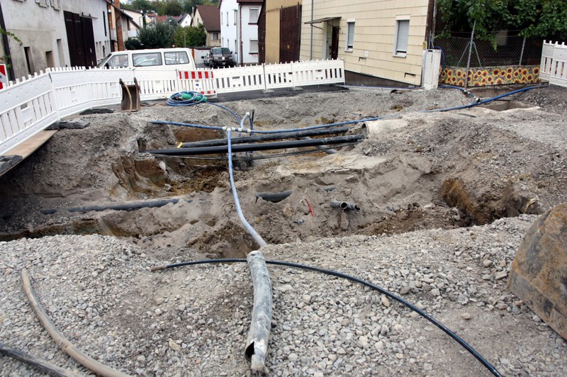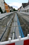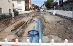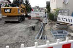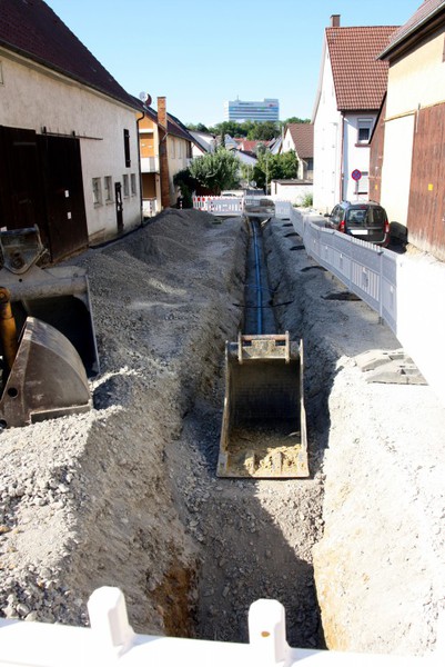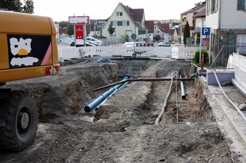 Die Arbeiten gehen zügig und strukturiert weiter. Im Baugraben liegen bereits viele Leitungen, die Arbeiten an der Gasleitung gehen weiter und von unten her fängt der