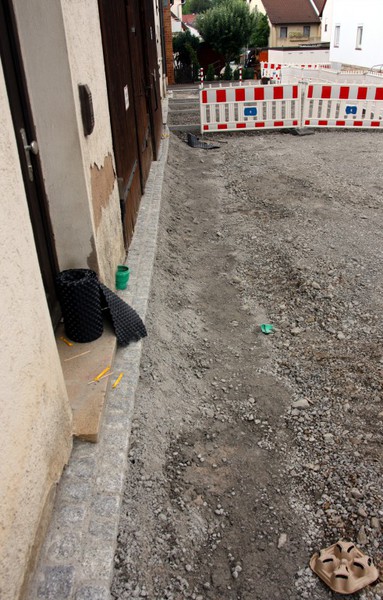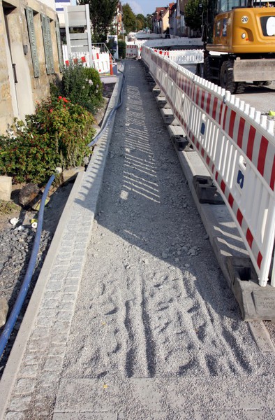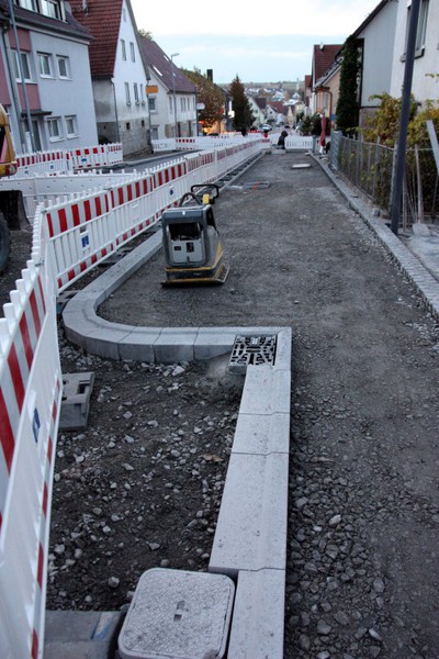 mit Randsteinen versehen und für das Asphaltieren vorbereitet. Die zeitliche Planvorhersage bis Ende Oktober den Asphalt bis zur Gottliebstraße liegen zu haben, scheint also aufzugehen. Die