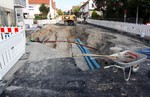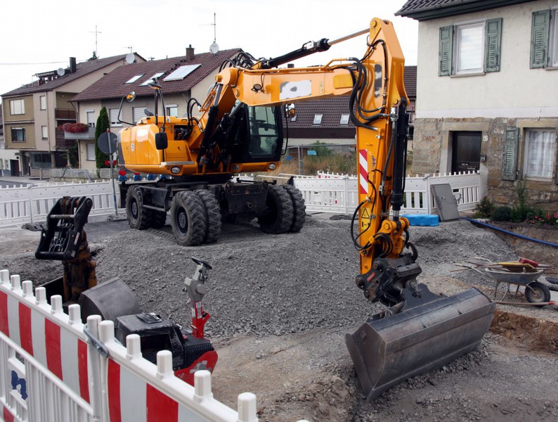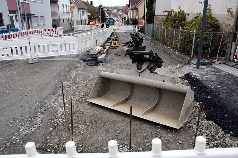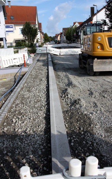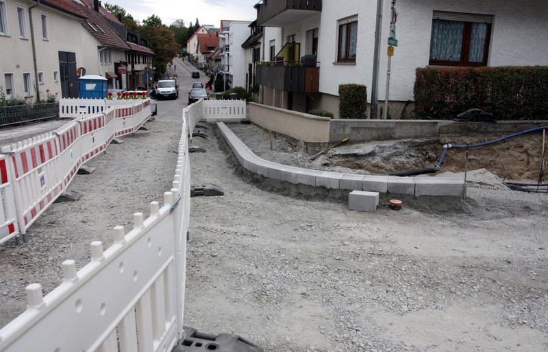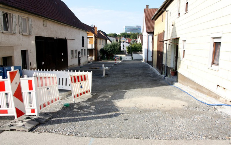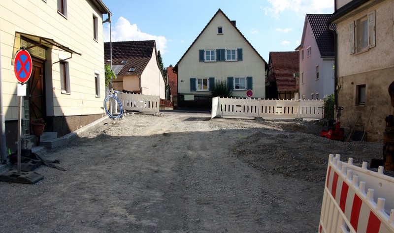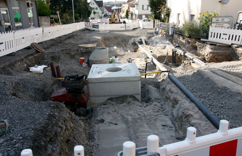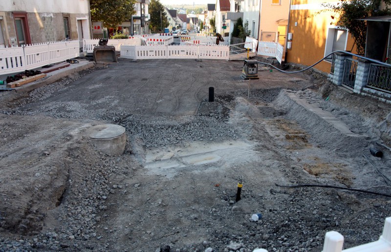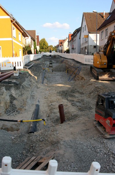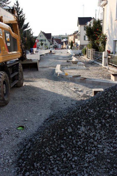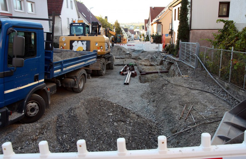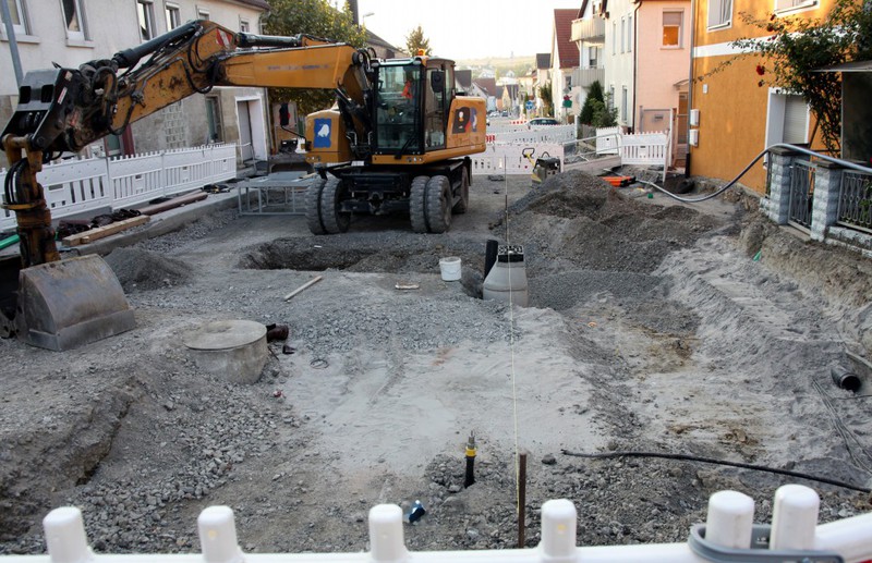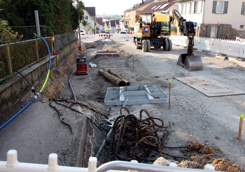 Jetzt geht es richtig an der Stuttgarter Straße los. Der alte Asphalt ist weg und es haben zügig die Tiefbauarbeiten gestartet. Es ist also nicht so wie vor einem Jahr,
