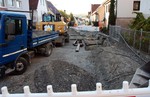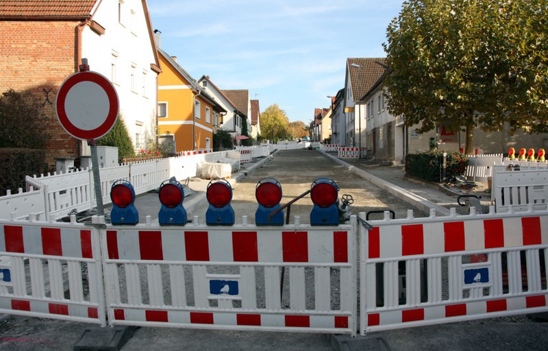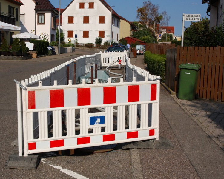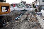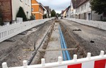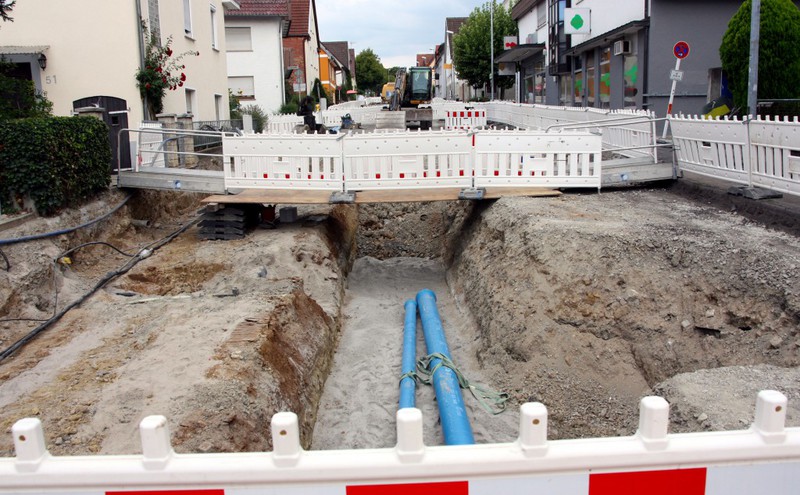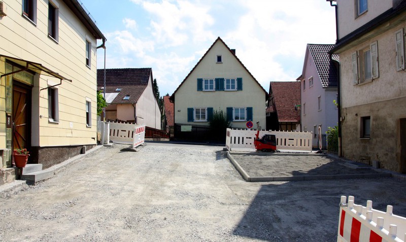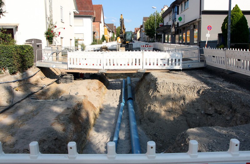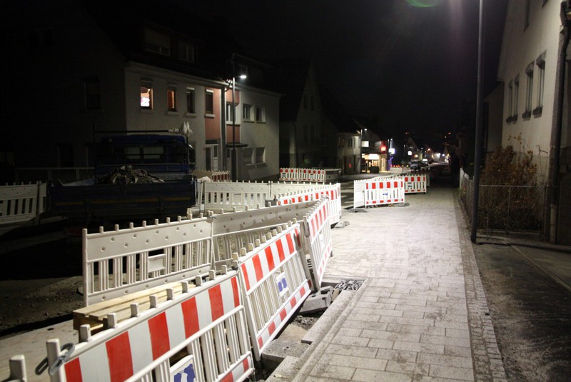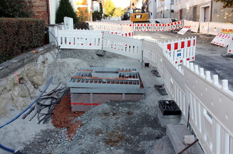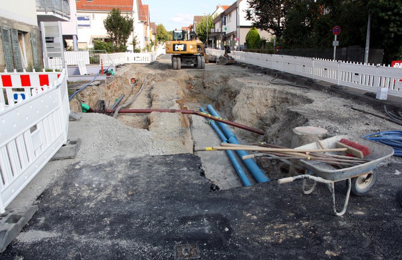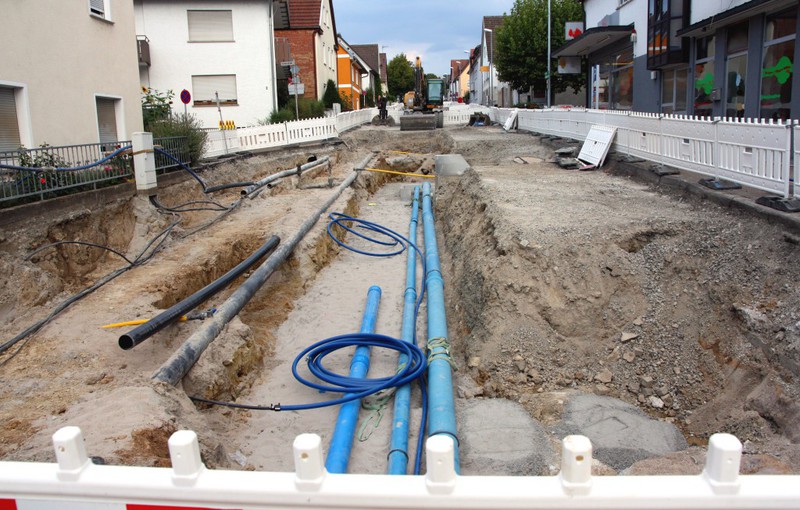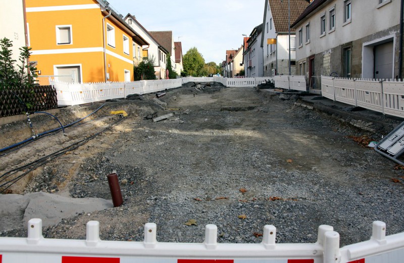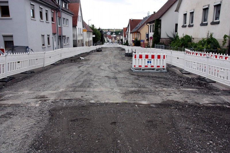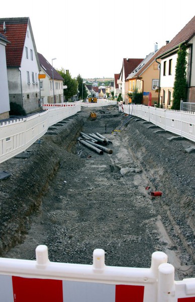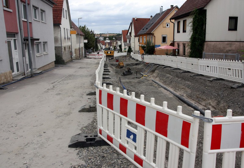 Ortsausgang. Auf ca. 1,2 km Länge werden Leitungen und Kanäle im Untergrund erneuert und danach die Straßen- und Gehwegflächen neu angelegt. Hinzu kommen die Sanierung des