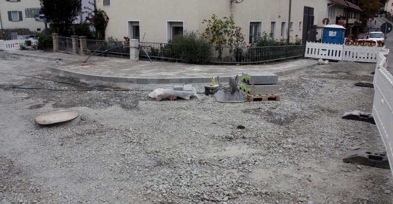Es wird weiterhin das erwartete Standardprogramm abgespult: Hausanschlüsse verlegen, Randsteine setzen, Baumquartiere verbauen, Gehwege bauen. So gibt es heute auch nicht