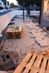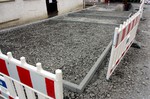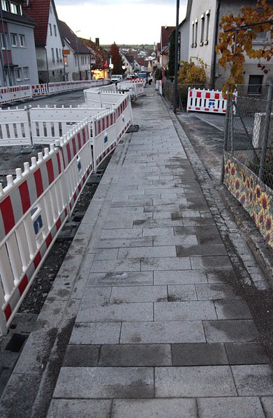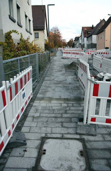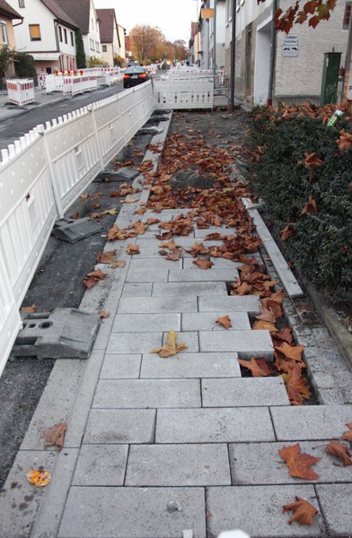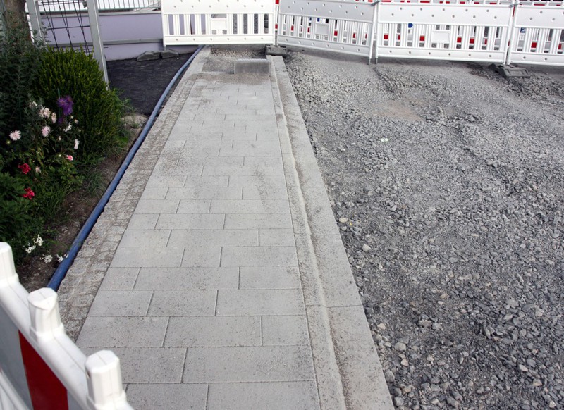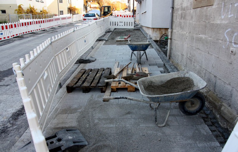 Pflasterarbeiten am Gehweg werden sicherlich zügig nachgezogen.