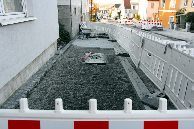 Fertigstellung der einen Gehwegseite dann auf die andere wechseln und dort dann noch Tiefbauarbeiten z.B. zur Neuverlegung von Hausanschlüssen durchführen. Mit der Zeit enden dann die Tiefbauarbeiten