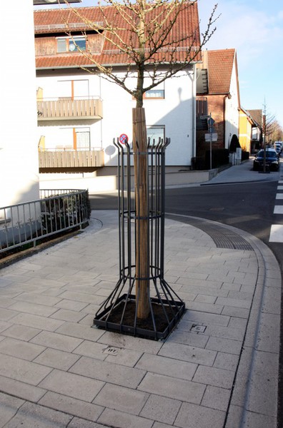 Beinahe an alle gepflanzten Bäume sind in dieser Woche die Schutzgitter angebracht worden. Die Bilder stehen hier exemplarisch für die auch in anderen Bauabschnitten