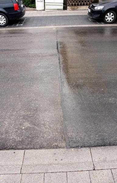 Straßenoberfläche zu hoch liegt. An anderer Stelle gab es hier schon Tieferlegungen.