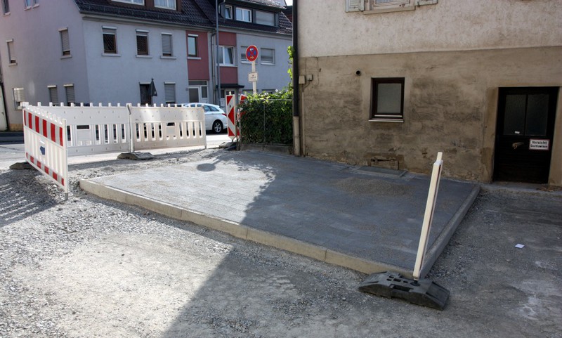 In der Gottliebstraße sind die bisher angelegten Parkplätze gepflastert worden. Zudem gab es neue Wasserabläufe und im hinteren Teil ist die Baugrube verschlossen worden.