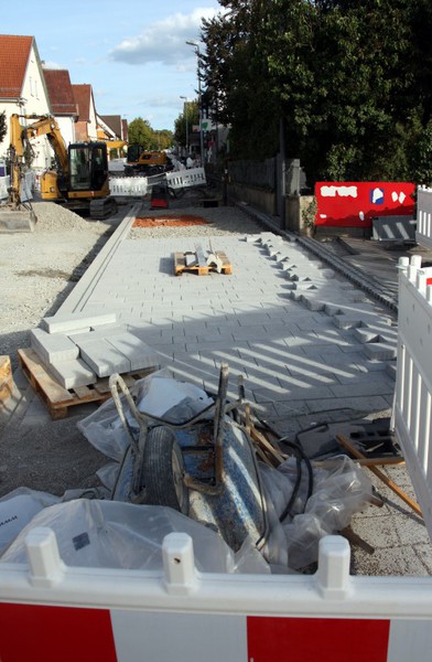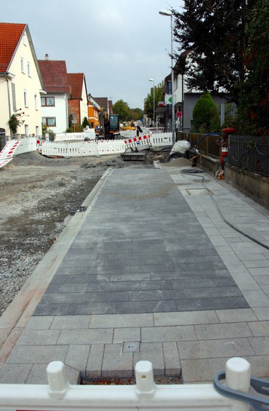 fehlende Randsteine gesetzt worden. Bis Ende Oktober soll dann der Rest des 4. Bauabschnitts abgeschlossen sein und dann der Belag bis zu Gottliebstraße liegen. Gleiches gilt für die neuen Gehwege.