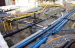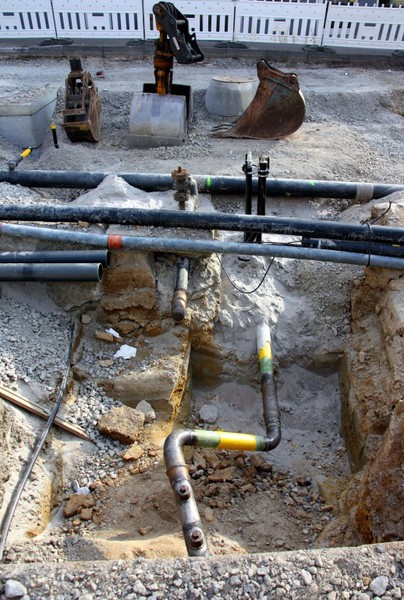 neben den Wasserleitungen ihren Platz ein. Für die Wasserleitungen gibt es auch neue Schächte.