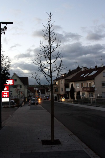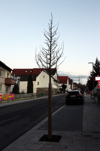 Der 4. Bauabschnitt hat seine Ginkgo-Bäume bekommen. Weshalb die Bäume schon sehen, aber deren Anfahrtschutz nicht, konnte über die Mitteilung im Amtsblatt nicht geklärt
