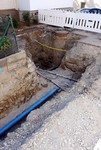 In der letzten Woche wurde alles schön plattgemacht und wie erwartet ging es in dieser Woche doch noch in die Tiefe. Es wurde eine Wasserleitung verlegt. Warum man zuerst