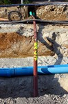 Gasleitung ist derzeit noch nichts zu sehen. Die vorhandene Gasleitung ist freigelegt, scheint aber mit nichts anderem zu kollidieren. Das einzige was auffällt ist, dass die Leitung bezüglich der