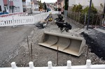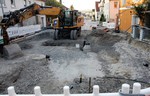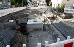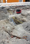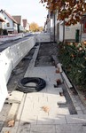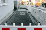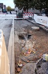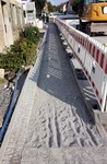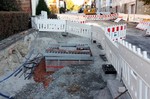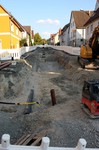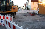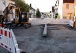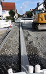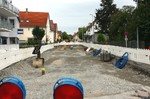 dort vorgesehenen Schacht. Während auf der nördlichen Seite die Randsteine gesetzt sind und die Gehwege soweit für die Pflasterung vorbereitet wurden, fand in dieser Woche der Wechsel auf die andere