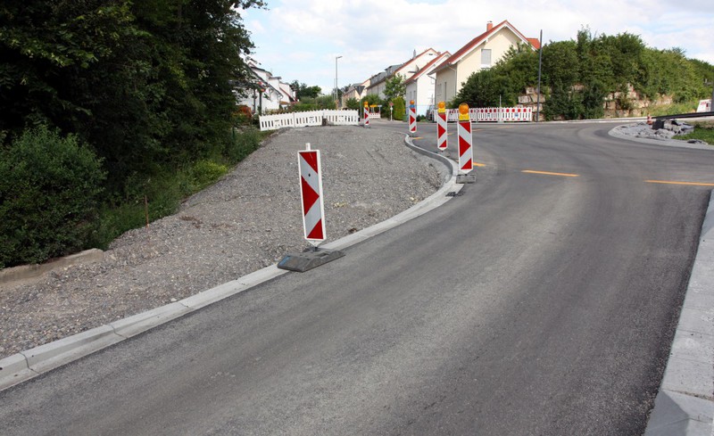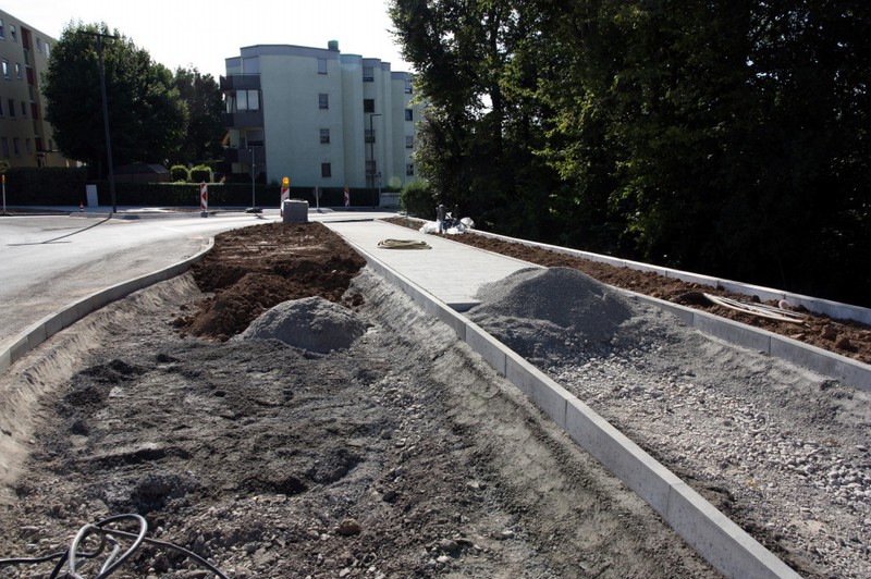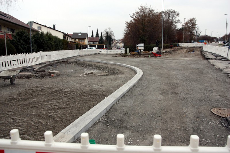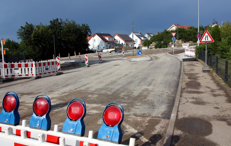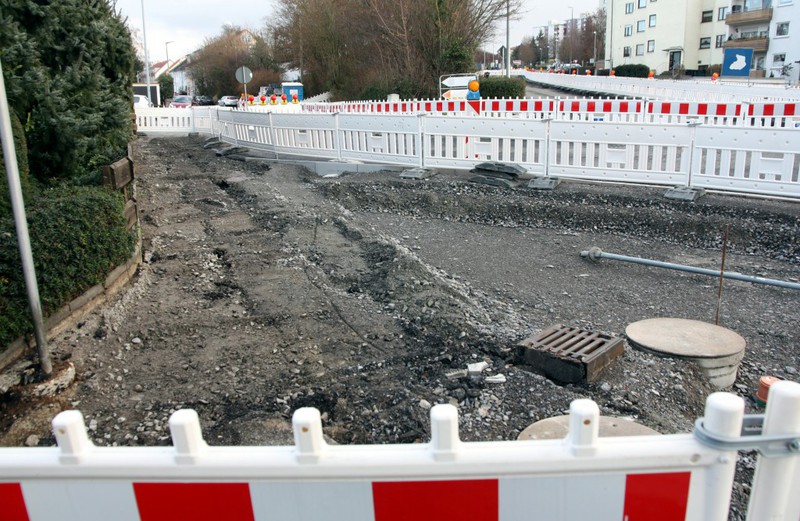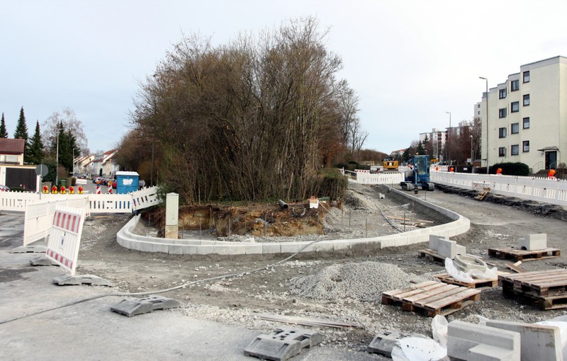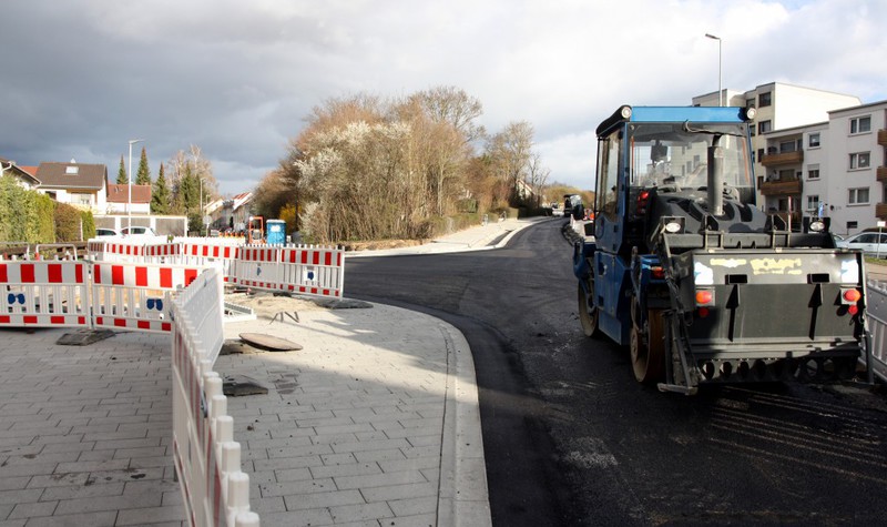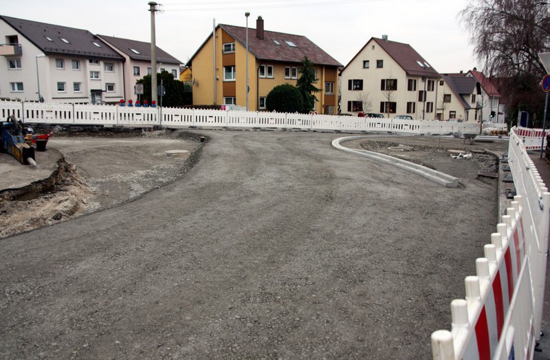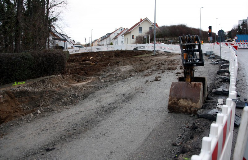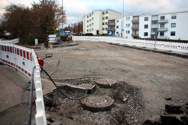 Im Bereich des künftigen neuen Kreisels sind die bestehenden Baugräben vollständig verschlossen worden. In Richtung der Hermann-Essig-Straße wurde eine neue Wasserleitung